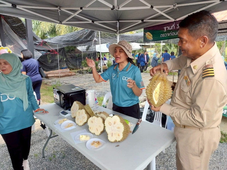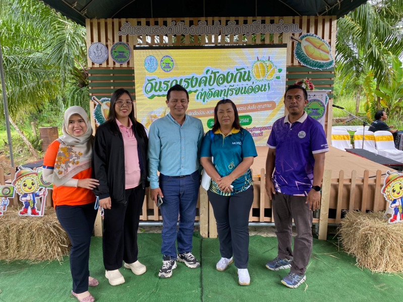 วันที่ 8 กรกฎาคม 2568 นางสุธาสินี แสงอรุณ สหกรณ์จังหวัดปัตตานี มอบหมายให้นางจินดา เกตุเรน ผู้อำนวยการกลุ่มส่งเสริมและพัฒนาธุรกิจสหกรณ์ พร้อมด้วยเจ้าหน้าที่จากกลุ่มส่งเสริมและพัฒนาธุรกิจสหกรณ์ เข้าร่วมงานวันรณรงค์ป้องกันกำจัดทุเรียนอ่อน โดยมีนางพาตีเมาะ สะดียามู ผู้ว่าราชการจังหวัดปัตตานีเป็นประธานเปิดงานวันรณรงค์กำจัดทุเรียนอ่อน ปี 2568 โดยมีวัตถุประสงค์เพื่อให้เกษตรกรและผู้ประกอบการ ได้ตระหนักถึงผลเสียหายจากการตัดทุเรียนอ่อน และเพื่อเป็นการประชาสัมพันธ์ให้ผู้ผลิต ผู้ประกอบการ และผู้บริโภคได้รับทราบถึงบทลงโทษและมาตราการการเอาผิดทางกฎหมายในกรณีมีการค้าขายทุเรียนอ่อน ตลอดจนเป็นการประชาสัมพันธ์ให้ผู้บริโภครู้จักวิธีการเลือกซื้อทุเรียนทีมีคุณภาพ ณ ที่ทำการวิสาหกิจชุมชนผู้ประกอบการจำหน่ายทุเรียนคุณภาพ ตำบลทรายขาว อำเภอโคกโพธิ์ จังหวัดปัตตานี