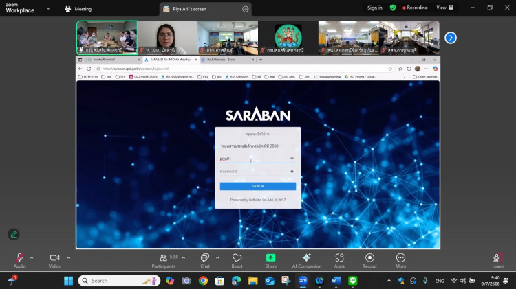 วันที่ 9 กรกฎาคม 2568 เวลา 09.30 น. นางสุธาสินี แสงอรุณ สหกรณ์จังหวัดปัตตานี มอบหมายให้เจ้าหน้าที่กลุ่มงานวิชาการ กลุ่มส่งเสริมสหกรณ์ และฝ่ายบริหารทั่วไป เข้าร่วมประชุมการใช้ระบบสารบรรณอิเล็กทรอนิกส์ (e-saraban) ของหน่วยงาน โดยมีวัตถุประสงค์เพื่อซักซ้อมและติดตามผลการใช้งานระบบ ร่วมกับศูนย์เทคโนโลยีสารสนเทศและการสื่อสาร สำนักงานเลขานุการกรม และ บริษัท เอ้กซ์เซล ลิงค์ จำกัด ผ่านโปรแกรม Zoom Meeting ณ สำนักงานสหกรณ์จังหวัดปัตตานี โดยมีนายสาธิต ปานขำ เลขานุการกรม เป็นประธานในพิธีเปิดการประชุมในครั้งนี้ ผ่านระบบออนไลน์ Zoom Meeting ถ่ายทอดสัญญาณจาก สำนักพัฒนาและถ่ายทอดเทคโนโลยีการสหกรณ์ เขตดุสิต กรุงเทพมหานคร