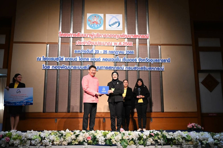 วันที่ 23-25 กรกฎาคม 2568 นางสุธาสินี แสงอรุณ สหกรณ์จังหวัดปัตตานี พร้อมด้วยนางอัสลีนา ระเด่นอาหมัด ผู้อำนวยการกลุ่มส่งเสริมและพัฒนาการบริหารการจัดการสหกรณ์และนางฟาตีมะฮ์ ปูตะ นักวิชาการสหกรณ์ เข้าร่วมโครงการสัมมนาผู้บริหารกองทุนพัฒนาสหกรณ์ ประจำปีงบประมาณ พ.ศ. 2568 โดยมี นายวิศิษฐ์ ศรีสุวรรณ์ อธิบดีกรมส่งเสริมสหกรณ์ เป็นประธานในพิธีเปิดโครงการสัมมนาผู้บริหารกองทุนพัฒนาสหกรณ์ ประจำปีงบประมาณ พ.ศ. 2568 ณ โรงแรมสุนีย์ แกรนด์ โฮเทล แอนด์ คอนเวนชั่น เซ็นเตอร์ อำเภอเมือง จังหวัดอุบลราชธานี จัดขึ้นระหว่างวันที่ 23 - 25 กรกฎาคม 2568 โดยมีวัตถุประสงค์เพื่อติดตามและประเมินผลโครงการ/แผนงานของสหกรณ์ที่ได้รับการสนับสนุนเงินกองทุนพัฒนาสหกรณ์ รวมถึงเพิ่มประสิทธิภาพการบริหารจัดการกองทุนพัฒนาสหกรณ์