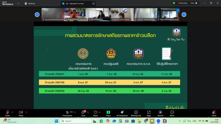 วันพฤหัสบดีที่ 25 กันยายน 2568 เวลา 09.00 น. นางสุธาสินี แสงอรุณ สหกรณ์จังหวัดปัตตานี มอบหมายให้นางจินดา เกตุเรน ผู้อำนวยการกลุ่มส่งเสริมและพัฒนาธุรกิจสหกรณ์ เข้าร่วมการประชุมชี้แจงแนวทางการดำเนินโครงการตามมาตรการรักษาเสถียรภาพราคาข้าวเปลือก ปีการผลิต2568/69 โดยมี นายวิศิษฐ์ ศรีสุวรรณ์ อธิบดีกรมส่งเสริมสหกรณ์ เป็นประธาน สำหรับการประชุมในครั้งนี้ที่ประชุมได้รายงานคำสั่งกระทรวงเกษตรและสหกรณ์ แต่งตั้งคณะอนุกรรมการบริหารโครงการฯระดับจังหวัด พร้อมทั้งชี้แจงหลักเกณฑ์และเงื่อนไขโครงการตามมาตรการรักษาเสถียรภาพราคาข้าวเปลือก รวมทั้งรายงานแนวทางการดำเนินงานกรณีราคาข้าวเปลือกในตลาดต่ำกว่าราคาข้าวเปลือกที่ให้สินเชื่ออีกด้วย โดยถ่ายทอดสัญญาณผ่านระบบสื่อสารทางไกลระบบ Zoom Meeting