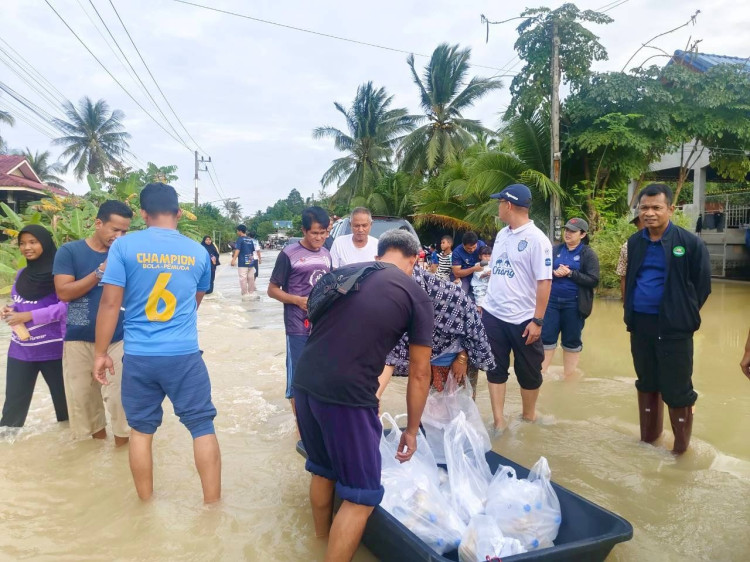 วันที่ 27 พฤศจิกายน 2568 นายมนัส เทพรักษ์ รองอธิบดีกรมส่งเสริมสหกรณ์ พร้อมด้วยนายนิเปาซี เจ๊ะแว ผู้อำนวยการกลุ่มส่งเสริมการพัฒนาการบริหารการจัดการสหกรณ์ และบุคลากรของสำนักงานสหกรณ์จังหวัดปัตตานี ร่วมกับขบวนการสหกรณ์/กลุ่มเกษตรกรในจังหวัดปัตตานี จัดทำอาหารกล่องพร้อมน้ำดื่ม จำนวน 500 ชุด มอบให้แก่สมาชิกสหกรณ์/กลุ่มเกษตรกรในจังหวัดปัตตานี ประกอบด้วย สหกรณ์การเกษตรกูแบสีราพัฒนา จำกัด อ.ยะรัง, กลุ่มเกษตรกรทำนาปะกาฮะรัง อ.เมือง, สหกรณ์ปาล์มน้ำมันปัตตานี จำกัด อ.หนองจิก และสหกรณ์การเกษตรทุ่งลิปะสะโง จำกัด อ.หนองจิก นอกจากนี้ได้มอบปัจจัยยังชีพให้แก่บุคลากรสำนักงานสหกรณ์จังหวัดปัตตานี ที่ประสบอุทกภัยน้ำท่วม