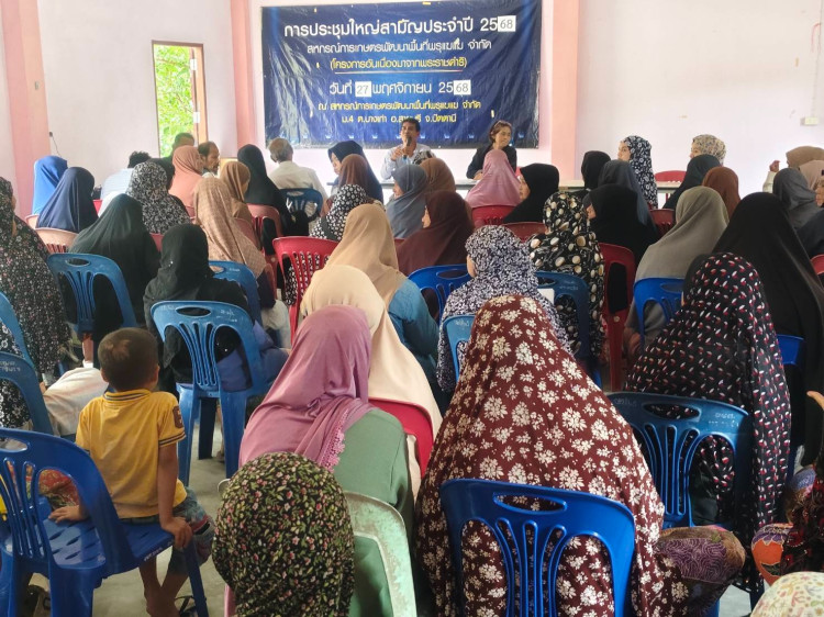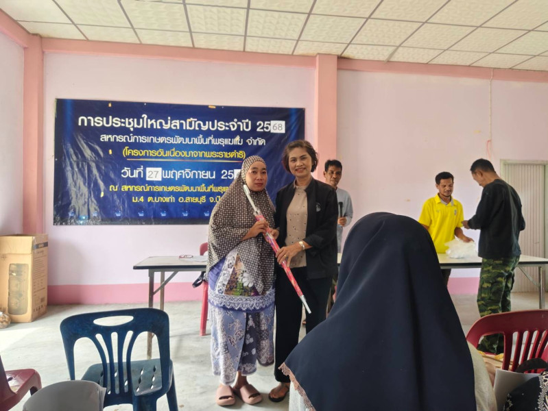 วันที่ 27 พฤศจิกายน 2568 เวลา 09.00 น. นางสุธาสินี แสงอรุณ สหกรณ์จังหวัดปัตตานี มอบหมายให้นางอรยา ศรีแสนยงค์ ผู้อำนวยการกลุ่มส่งเสริมสหกรณ์ 4 อำเภอสายบุรี ไม้แก่น กะพ้อ) เข้าร่วมประชุมใหญ่สามัญประจำปีสหกรณ์การเกษตรพัฒนาพื้นที่พรุแฆแฆ จำกัด สำหรับปีบัญชีสิ้นสุด วันที่ 30 มิถุนายน 2568 สหกรณ์มีกำไรสุทธิ 60,503.56 บาท โดยในการประชุมครั้งนี้ได้พิจารณา เรื่องการแก้ไขข้อบังคับตามกฎกระทรวง ในเรื่องของการกำหนดลักษณะ วัตถุประสงค์ และขอบเขตเเห่งการดำเนินกิจการของสหกรณ์ให้เป็นไปตามร่างของกรมส่งเสริมสหกรณ์ โดยมีแนวทางการแก้ไขข้อบังคับให้สอดคล้องตามประเภทของสหกรณ์ภาคการเกษตร พิจารณาแผนปรับปรุงการดำเนินงานของสหกรณ์ และเรื่องอื่น ๆ ให้ปฏิบัติตามข้อบังคับ ระเบียบ และกฎหมายอื่นที่เกี่ยวข้อง ณ สหกรณ์การเกษตรพัฒนาพื้นที่พรุแฆแฆจำกัด อำเภอสายบุรี จังหวัดปัตตานี