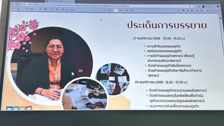 วันที่ 27-28 พฤศจิกายน 2568 นางสุธาสินี แสงอรุณ สหกรณ์จังหวัดปัตตานี มอบหมายให้นายนิเปาซี เจ๊ะแว ผู้อำนวยการกลุ่มส่งเสริมและพัฒนาการบริหารการจัดการสหกรณ์ พร้อมด้วยบุคลากรกลุ่มส่งเสริมและพัฒนาการบริหารการจัดการสหกรณ์ เข้าร่วมโครงการถ่ายทอดความรู้บุคลากรในการจัดทำแผนธุรกิจสหกรณ์ ผ่านระบบ Zoom Meeting โดยมีนายนิรันดร์ มูลธิดา อธิบดีกรมส่งเสริมสหกรณ์ เป็นประธานในพิธีเปิด พร้อมบรรยายพิเศษ ในโอกาสนี้ อธิบดีฯ กล่าวว่า โครงการนี้จะเป็นจุดเริ่มต้นในการพัฒนาศักยภาพของบุคลากร ให้มีความรู้ความเข้าใจถึงขั้นตอนและแนวทางในการจัดทำแผนธุรกิจของสหกรณ์ สามารถนำองค์ความรู้ไปใช้เป็นแนวทางในการแนะนำ ส่งเสริมสหกรณ์ให้สามารถจัดทำแผนธุรกิจได้อย่างมีประสิทธิภาพ ผลักดันให้สหกรณ์ ผู้ใช้บริการสามารถเข้าถึงแหล่งเงินทุนในการขับเคลื่อนเศรษฐกิจของสมาชิกและชุมชน