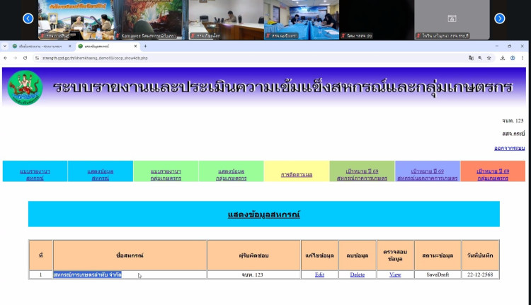 วันจันทร์ที่ 22 ธันวาคม พ.ศ. 2568 เวลา 09.30 น. นางสุธาสินี แสงอรุณ สหกรณ์จังหวัดปัตตานี มอบหมายให้กลุ่มจัดตั้งและส่งเสริมสหกรณ์ กลุ่มงานวิชาการ และเจ้าหน้าที่ส่งเสริมสหกรณ์กลุ่มส่งเสริมสหกรณ์ 1-4 เข้าร่วมรับฟังการชี้แจงซักซ้อมและทำความเข้าใจการใช้งานระบบรายงานและประเมินความเข้มแข็งสหกรณ์และ กลุ่มเกษตรกร โดยมี นายสุรินทร์ วทัญญู ผู้อำนวยการศูนย์เทคโนโลยีสารสนเทศและการสื่อสาร เป็นประธาน เปิดการชี้แจงซักซ้อมและทำความเข้าใจการใช้งานระบบรายงานและประเมินความเข้มแข็งสหกรณ์และกลุ่มเกษตรกร ประจำปี 2569 ผ่านระบบ Application Zoom ถ่ายทอดสัญญาณจากห้องประชุม 501 ชั้น 5 ศูนย์ถ่ายทอดเทคโนโลยีสารสนเทศและการสื่อสาร กรมส่งเสริมสหกรณ์