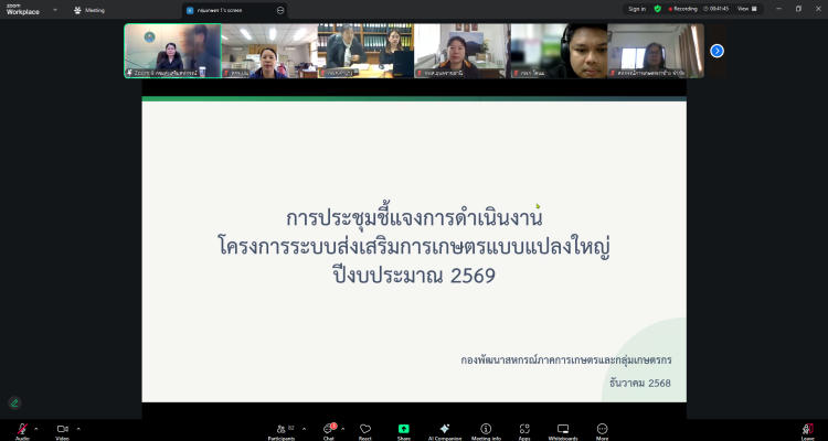 วันที่ 26 ธันวาคม 2568 เวลา 09.00 น. นางสุธาสินี แสงอรุณ สหกรณ์จังหวัดปัตตานี มอบหมายให้ นางสาวลักษมี แซ่ลิ่ม นักวิชาการสหกรณ์ปฏิบัติการ กลุ่มส่งเสริมและพัฒนาธุรกิจสหกรณ์ เข้าร่วมโครงการประชุมชี้แจงแนวทางการดำเนินโครงการระบบส่งเสริมเกษตรแบบแปลงใหญ่ ปีงบประมาณ พ.ศ. 2569 ผ่านระบบสื่อสารทางไกล (Zoom Meeting) เพื่อให้ทราบและเข้าใจแนวทางการดำเนินงาน หลักเกณฑ์ และเป้าหมายในการนำไปขับเคลื่อนและสนับสนุนการปฏิบัติงานในพื้นที่ได้อย่างมีประสิทธิภาพ โดยจังหวัดปัตตานี มีกลุ่มเป้าหมาย คือ ผู้แทนแปลงใหญ่สหกรณ์ จำนวน 6 แปลง และจะดำเนินการจัดโครงการฯ ภายในเดือนมกราคม 2569